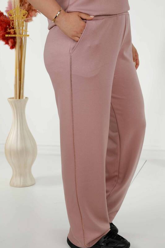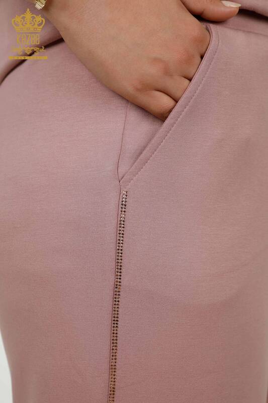 Toptan Kadın Eşofman Takımı Taş İşlemeli Cepli Gül - 20391 | KAZEE