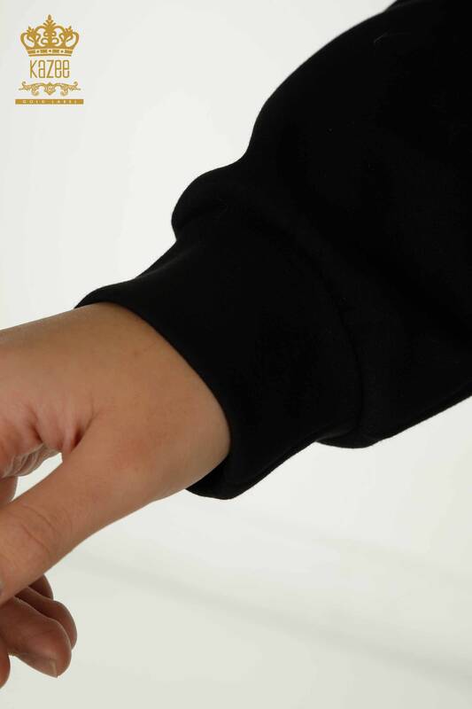 Venta al por mayor Conjunto de Chándal de Mujer Negro con Bordado de Piedras - 17578 | KAZEE