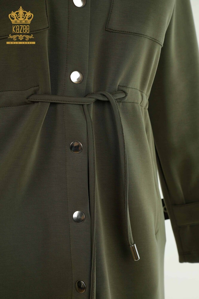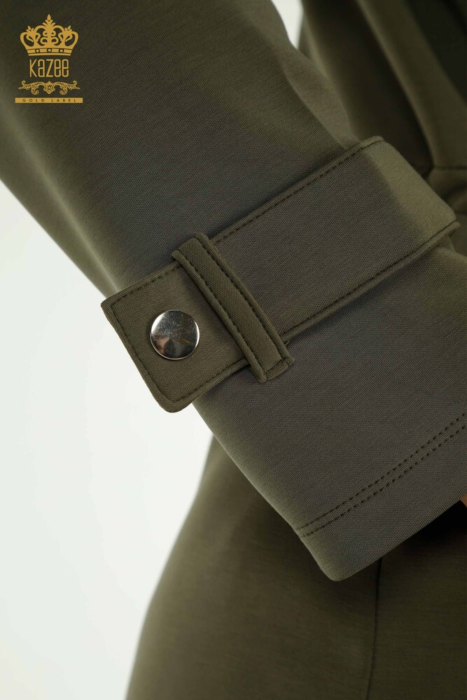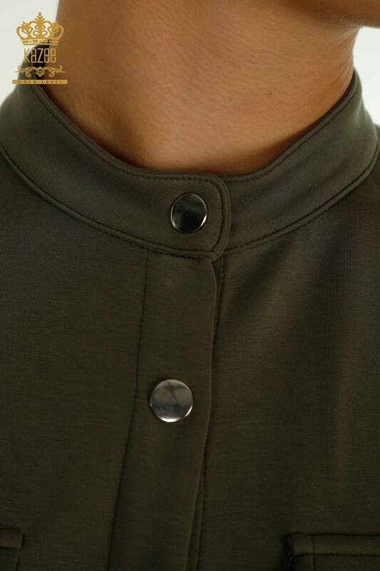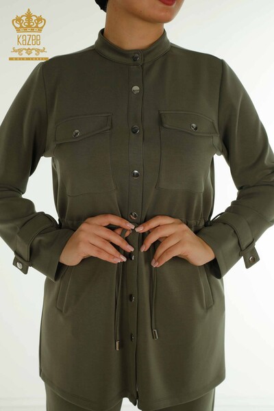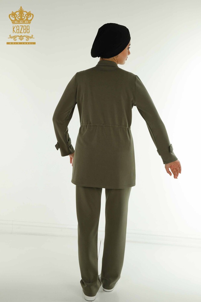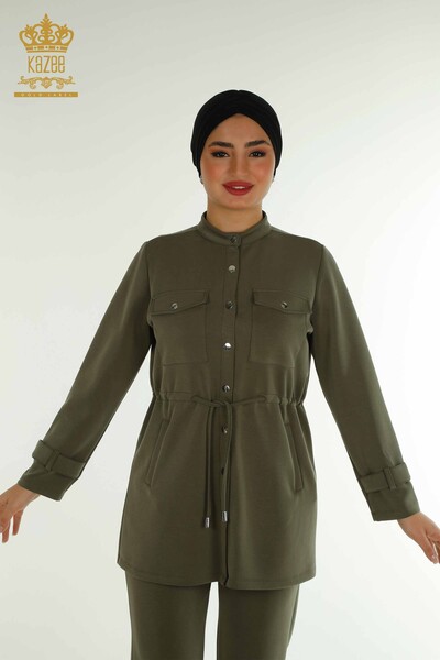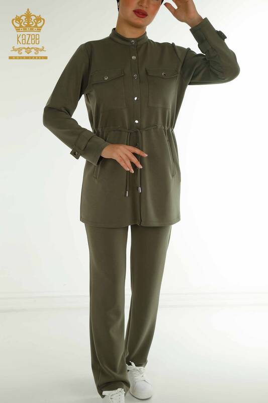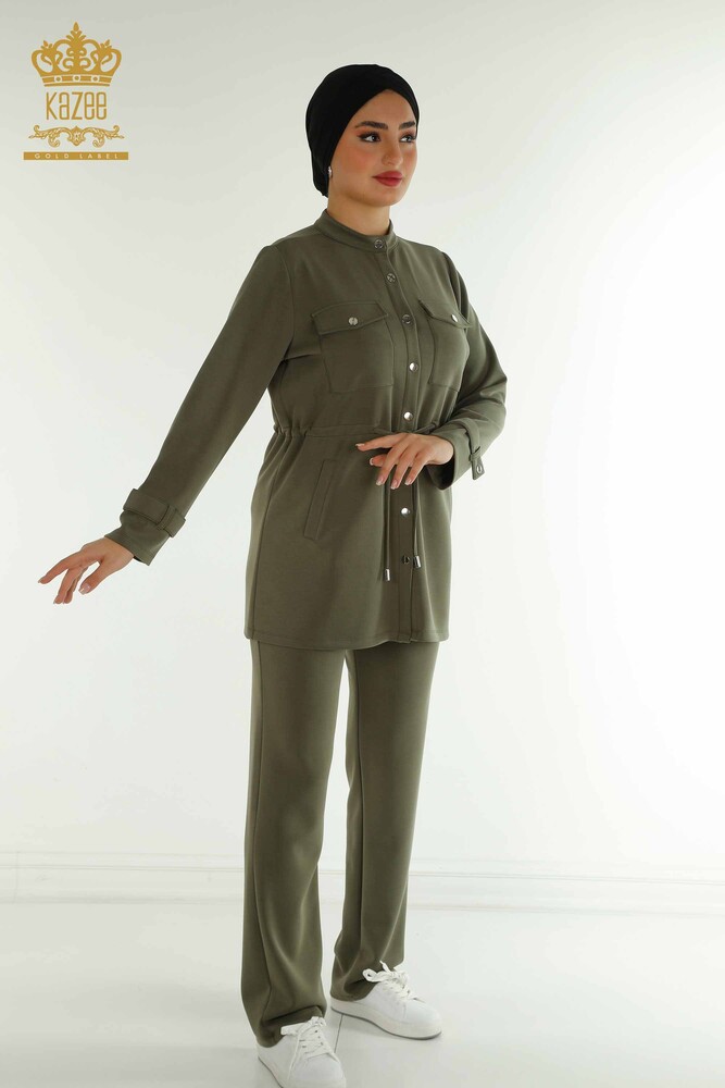Toptan Kadın Eşofman Tesettür Takımı Düğme Detaylı Cepli Haki - T-02 | KAZEE