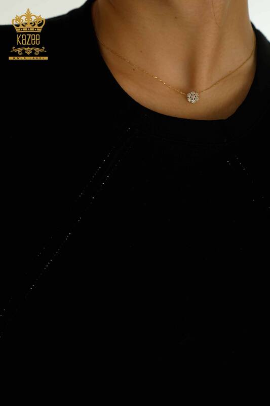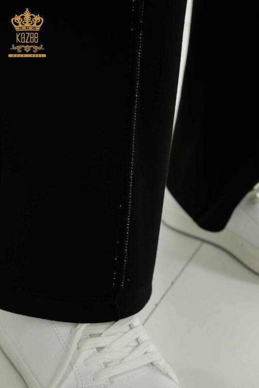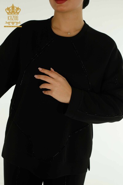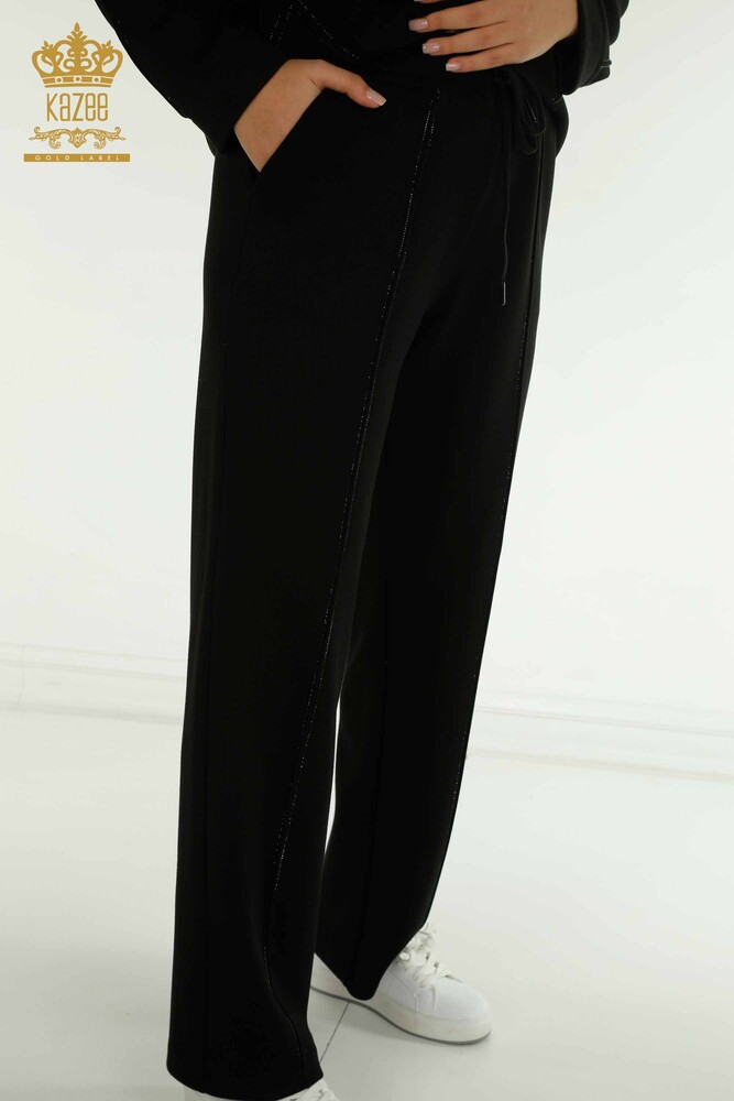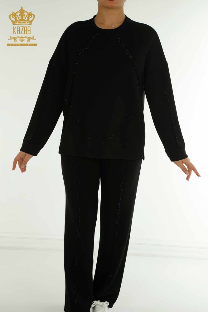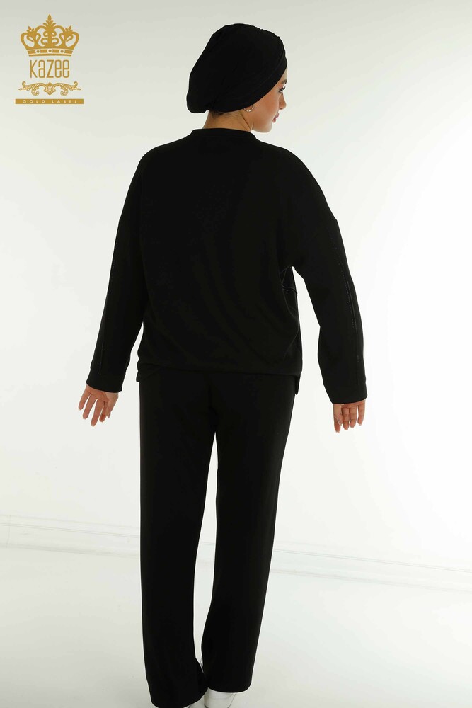 Toptan Kadın Eşofman Tesettür Takımı Taş İşlemeli Cepli Black - T-01 | KAZEE