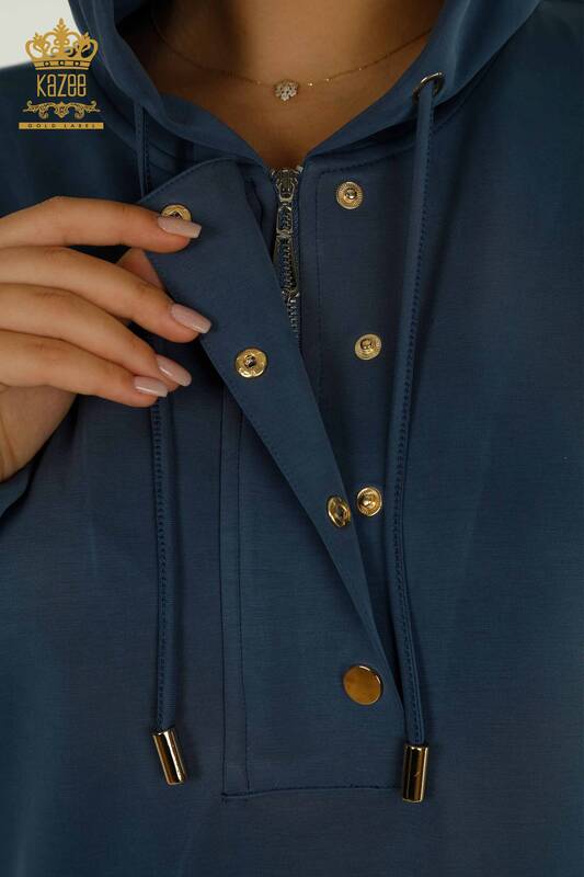 Toptan Kadın Eşofman Tesettür Takımı Yarım Düğme Detaylı  - Petrol T-03 | KAZEE