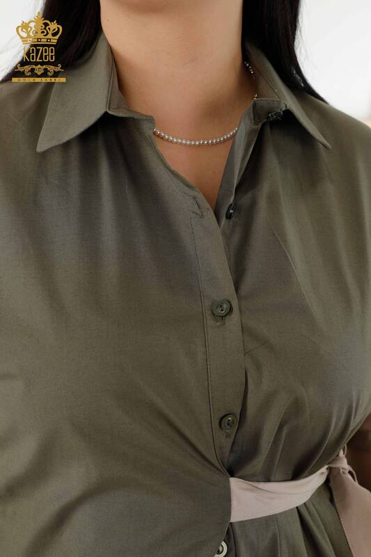 Toptan Kadın Gömlek Elbise İki Renkli Haki Bej - 20378 | KAZEE