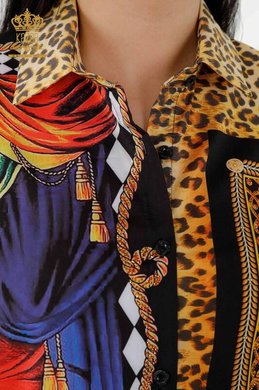 Toptan Kadın Gömlek Dijital Baskılı Taş İşlemeli - 20357 | KAZEE