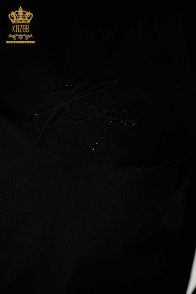 الجملة قميص نسائي تول مزين بحجر مطرز أسود - 20407 | كازي
