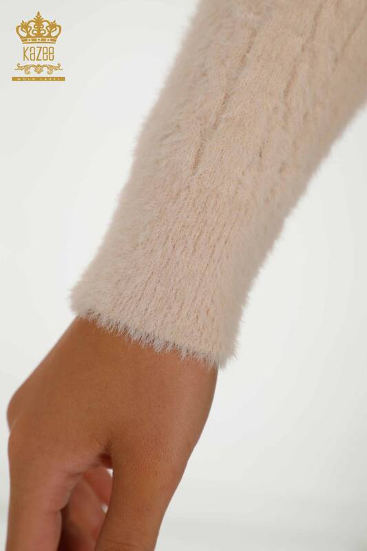 Toptan Kadın Hırka Angora Dokuma Bej - 30321 | KAZEE