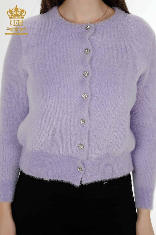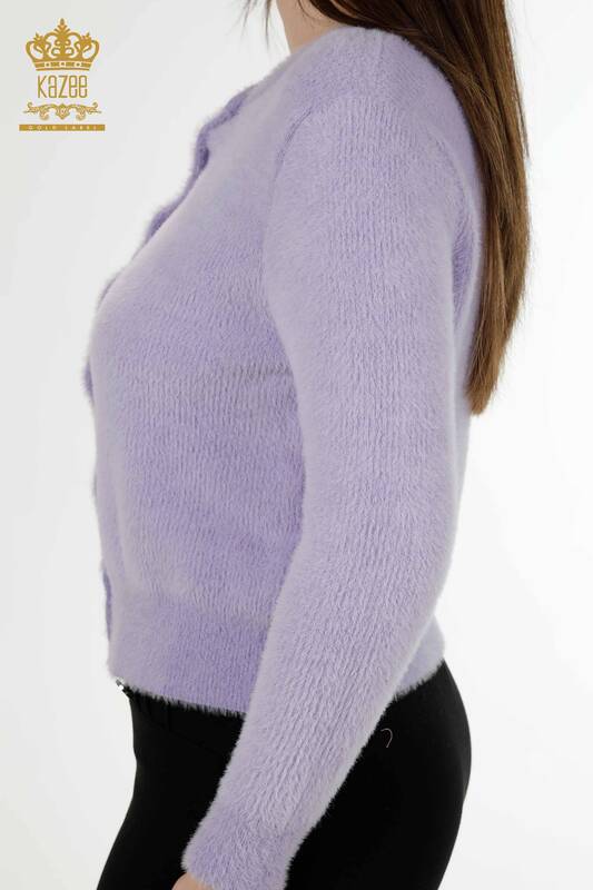 Toptan Kadın Hırka Angora Düğmeli Lila - 19099 | KAZEE