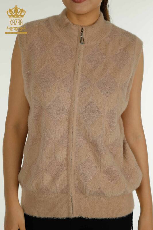 Toptan Kadın Hırka Fermuarlı Kolsuz Angora Pudra - 30211 | KAZEE