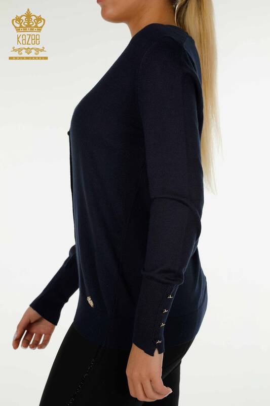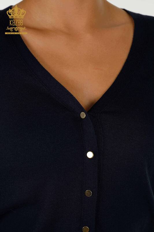 Toptan Kadın Hırka Kol Düğme Detaylı Lacivert - 30136 | KAZEE
