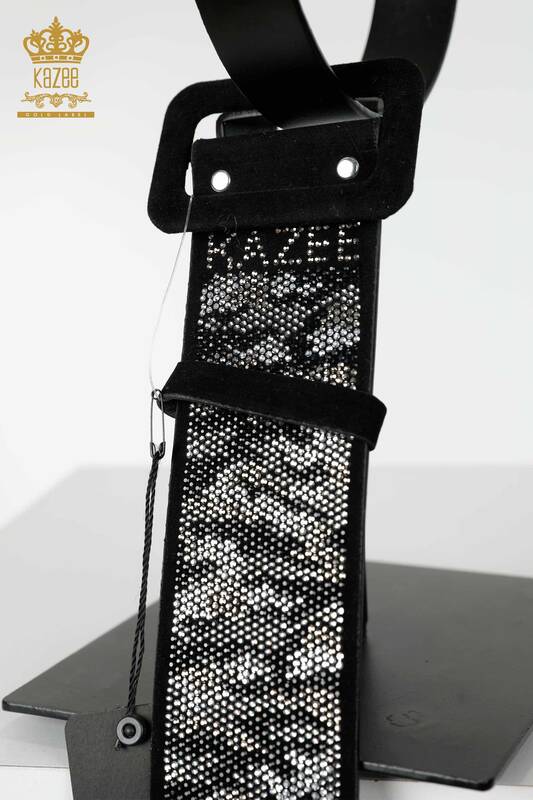 Großhandel Damengürtel Kristall Stein Bestickt Schwarz - 507 | KAZEE