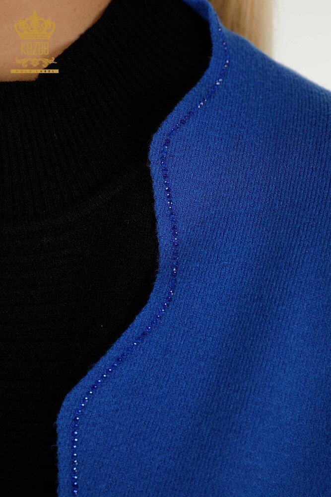 Женский короткий жилет сакс с вышивкой камнями оптом - 30274 | КАЗИ