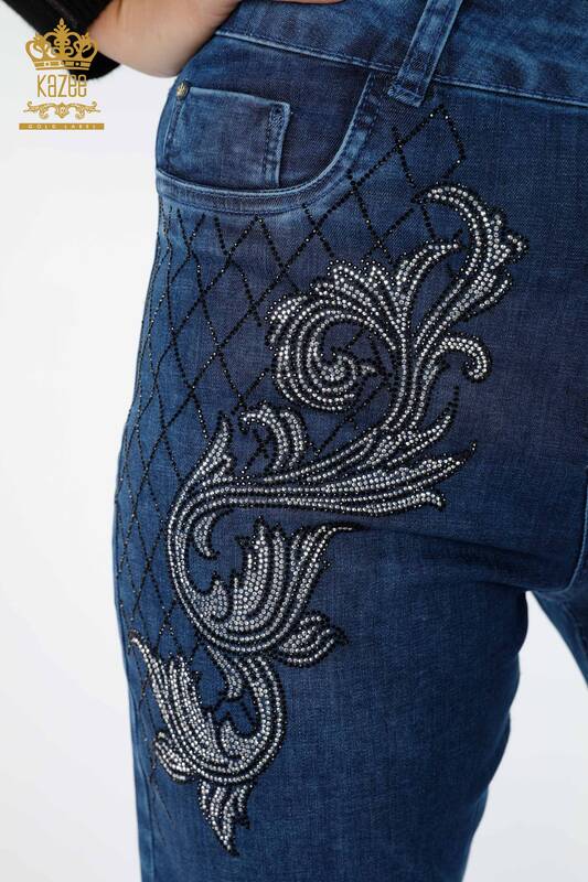 Toptan Bayan Kot Pantolon Desenli Taşlı Nakışlı Çizgi Detaylı - 3542 | KAZEE