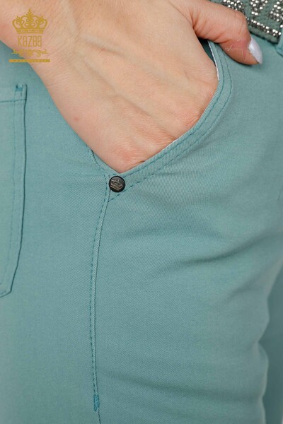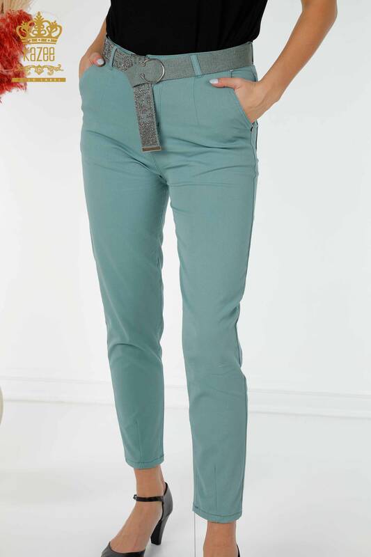 Wholesale Women's Denim Pants With Belt Pocket Mint - 3498 | KAZEE