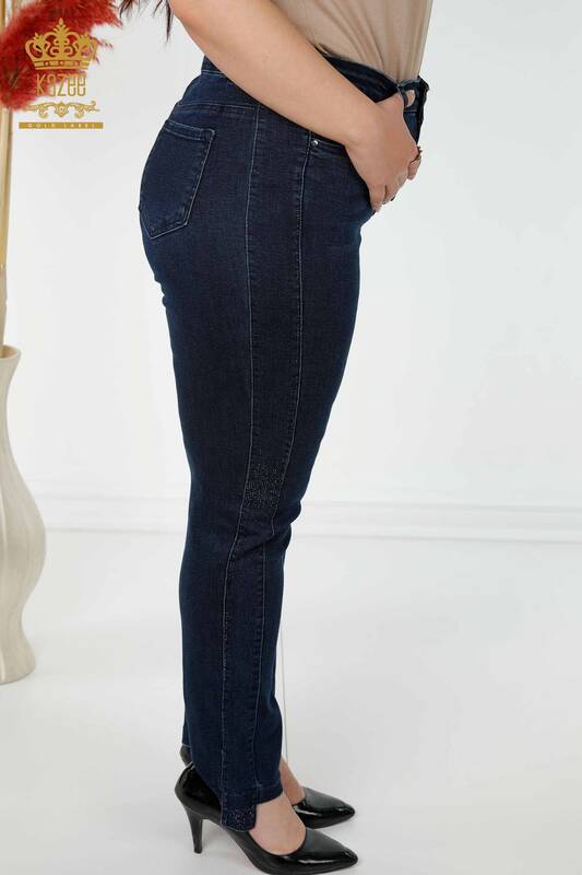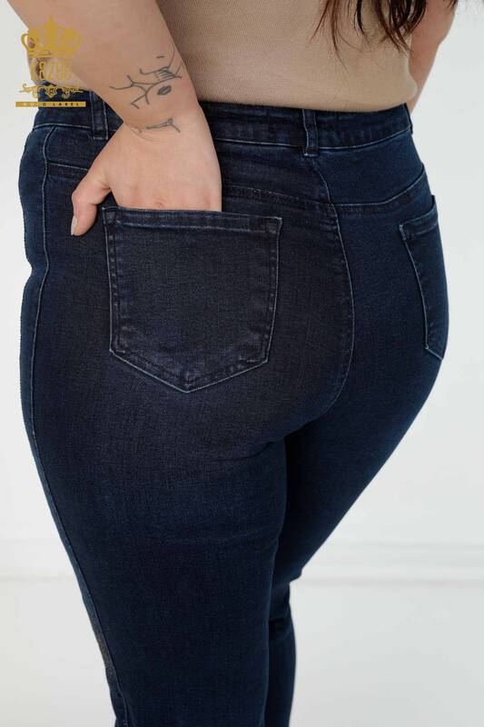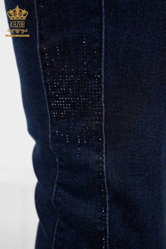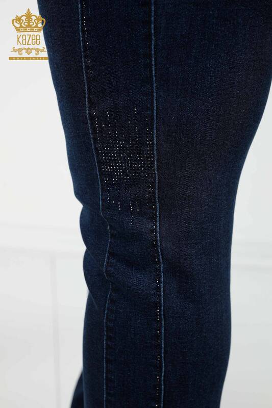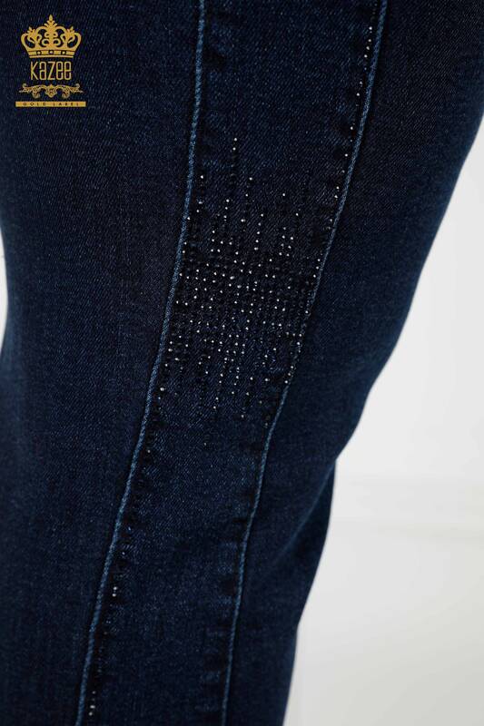Toptan Kadın Kot Pantolon Şerit Taş İşlemeli Lacivert - 3653 | KAZEE