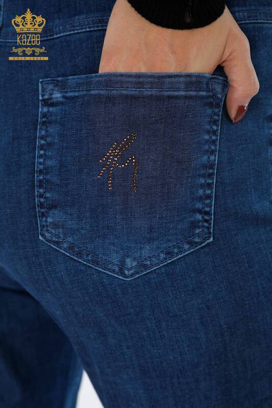 Großhandel Damenjeans mit seitlichen Streifen und detaillierten geschriebenen Steinen - 3636 | KAZEE