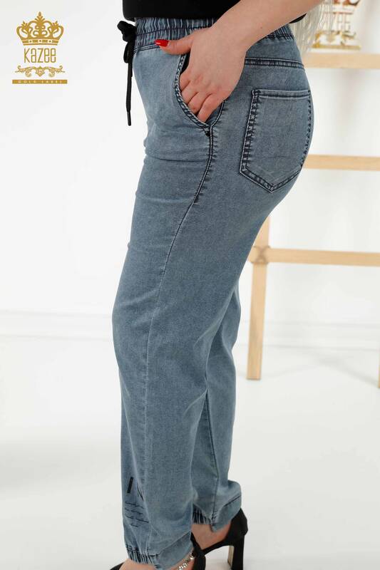 بنطلون نسائي - بخصر مطاطي مفصل باللون الأزرق الداكن - 3675 | كازي