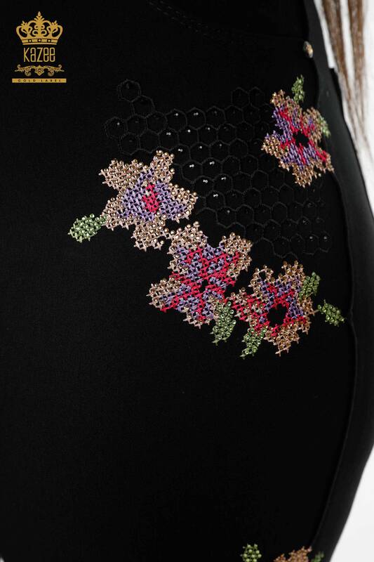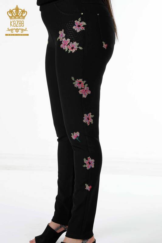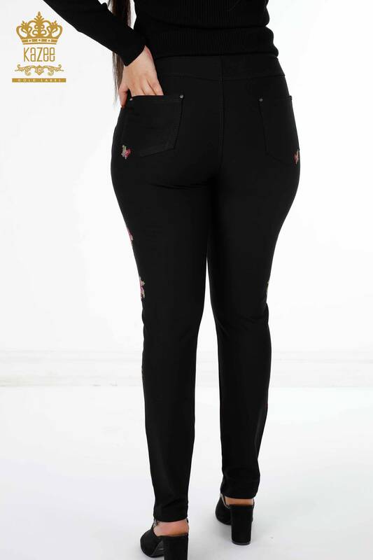 Toptan Bayan Pantolon Çiçek İşlemeli Taşlı Nakışlı Viskon - 3410 | KAZEE