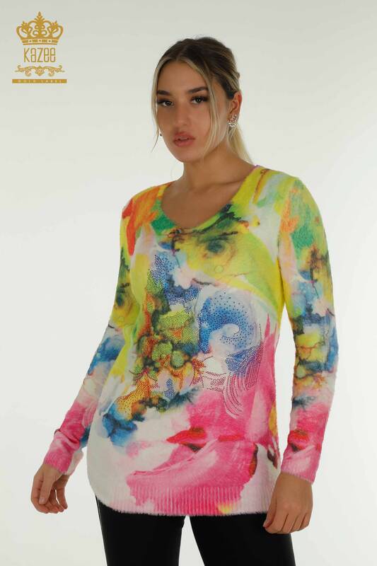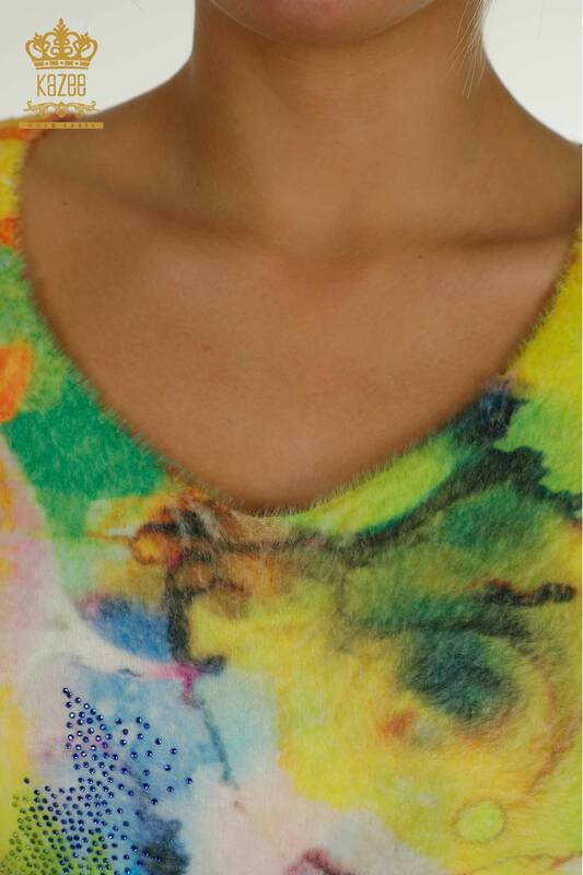 Toptan Kadın Triko Angora Taş İşlemeli Dijital - 40011 | KAZEE