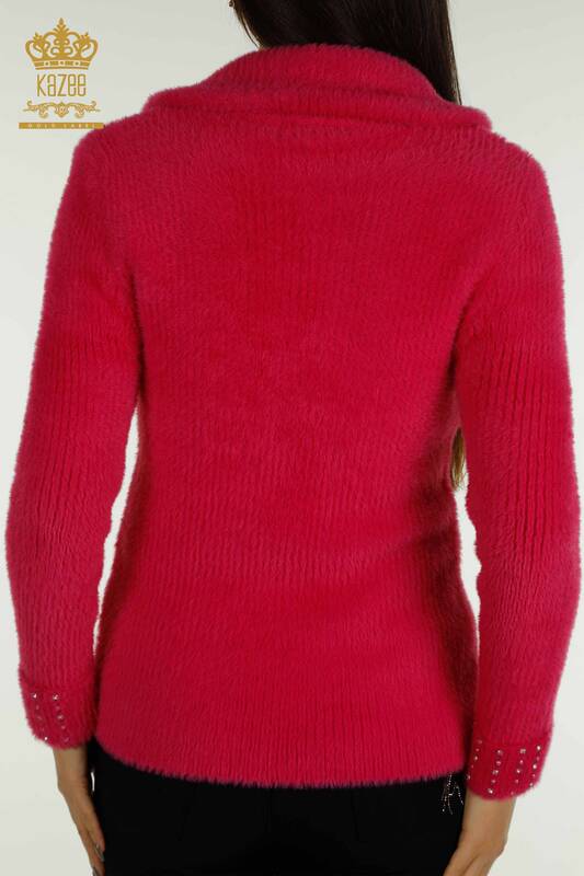 Toptan Kadın Triko Angora Taşlı Boncuklu Fermuarlı Fuşya - 30769 | KAZEE