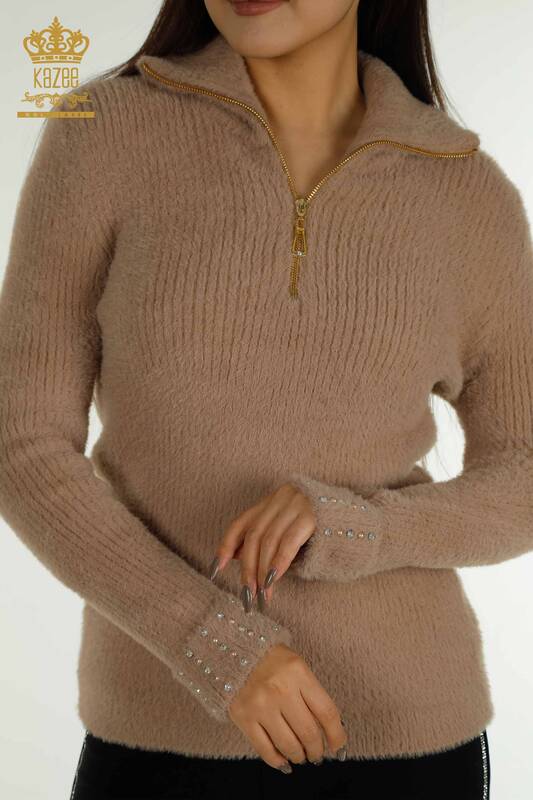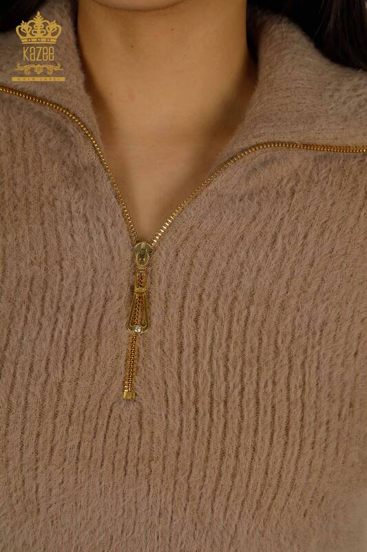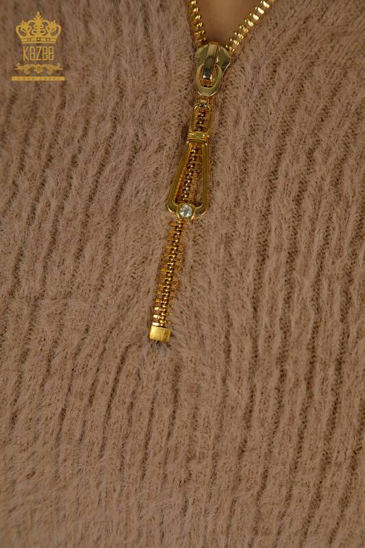 En-gros Tricoturi de damă Angora Stone Beaded Zippered Mink - 30769 | KAZEE