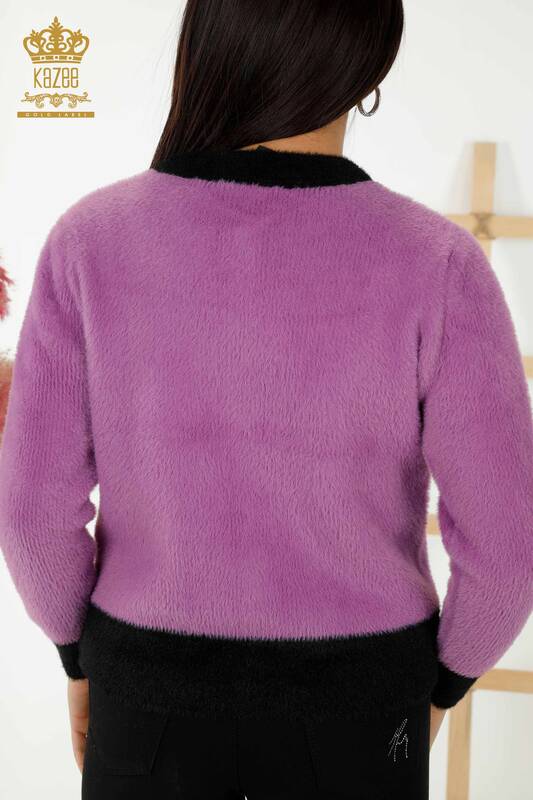 Toptan Kadın Triko Hırka Angora Düğmeli Lila - 30094 | KAZEE