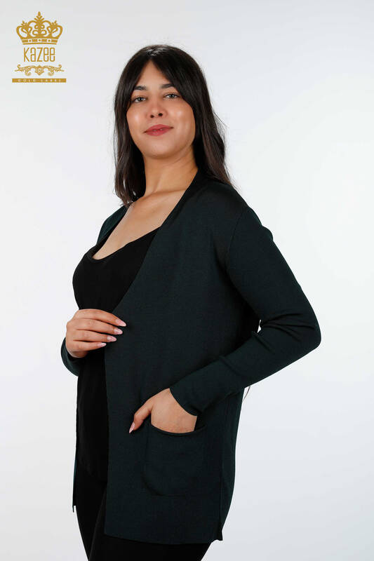 Tricotaj cu ridicata pentru femei Cardigan Buzunar lung Detaliat Viscoza - 15744 | KAZEE