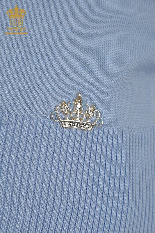 سترة تريكو نسائية بالجملة موديل أمريكي أساسي مع شعار أزرق فاتح - 15943 | كازي