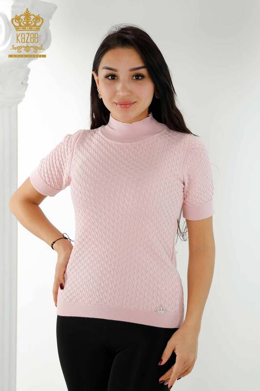 Toptan Kadın Triko Kazak Amerikan Model Basic Pudra - 30119 | KAZEE