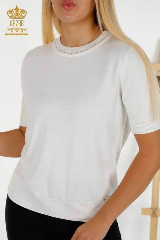 Toptan Kadın Triko Kazak Amerikan Model Ekru - 30255 | KAZEE