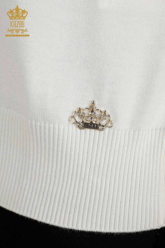 Toptan Kadın Triko Kazak Amerikan Model Basic Logolu Ekru - 30255 | KAZEE