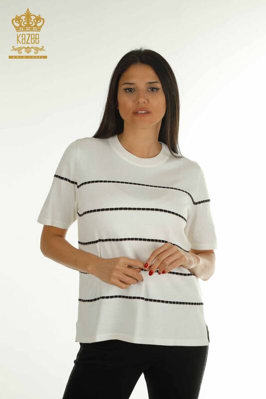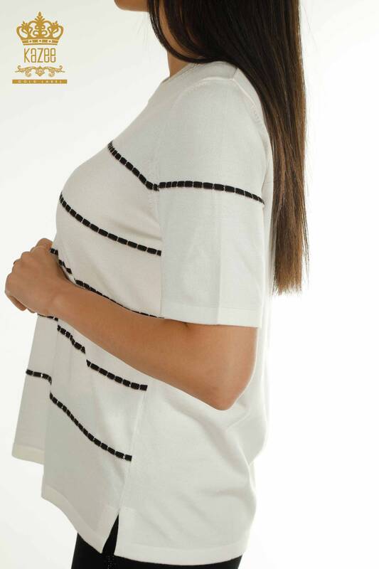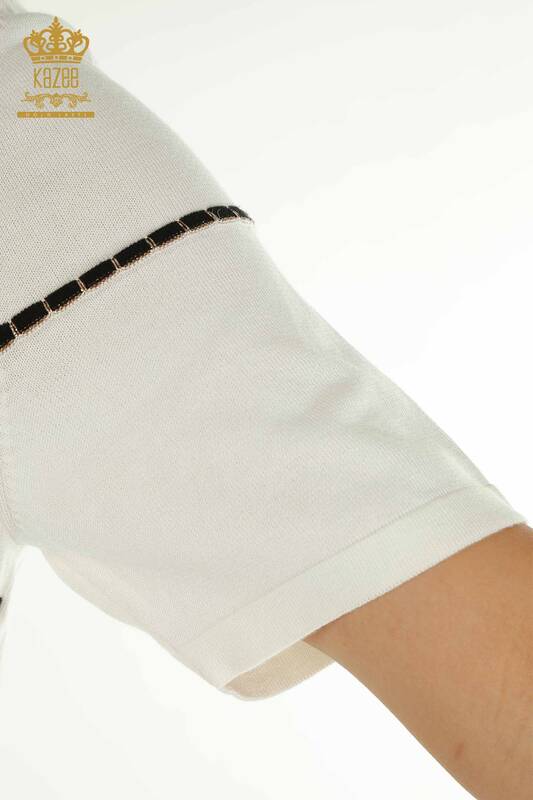 Toptan Kadın Triko Kazak Amerikan Model Kısa Kollu Ekru - 30355 | KAZEE
