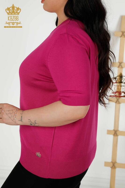 Toptan Kadın Triko Kazak Amerikan Model Fuşya - 30389 | KAZEE