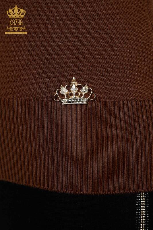 Toptan Kadın Triko Kazak Amerikan Model Basic Logolu Kahve - 15943 | KAZEE
