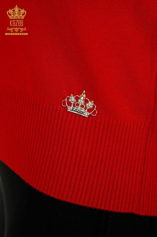 Toptan Kadın Triko Kazak Amerikan Model Basic Logolu Kırmızı - 30255 | KAZEE