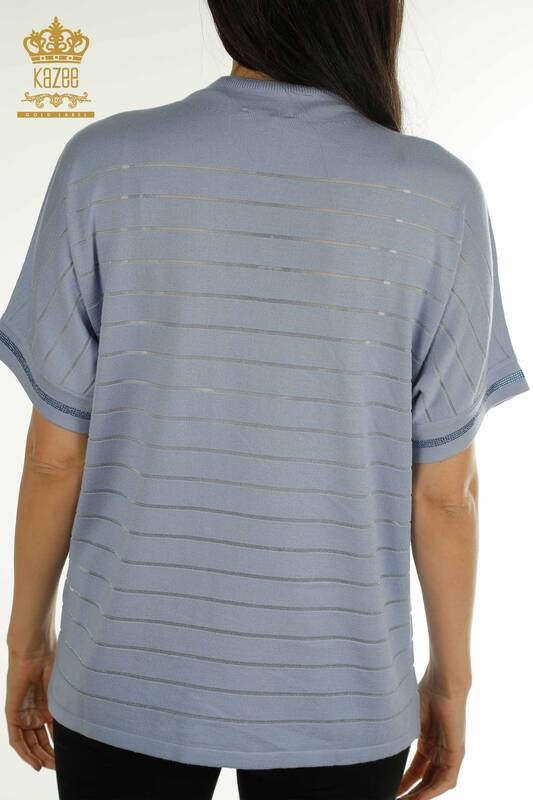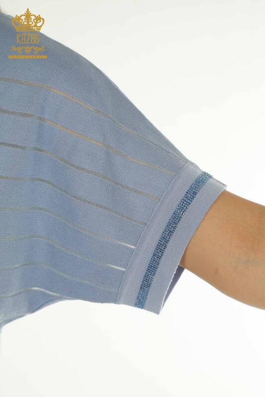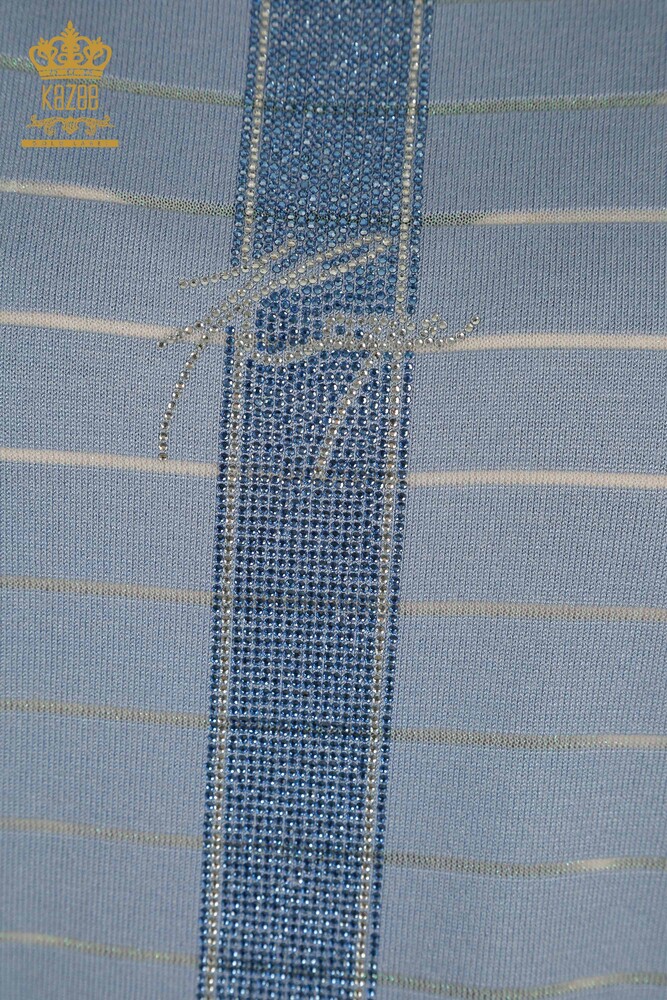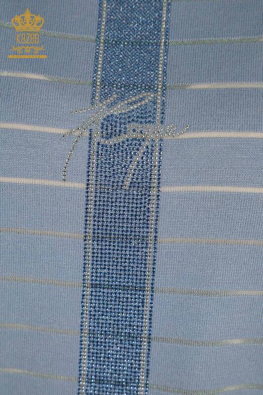 Toptan Kadın Triko Kazak Amerikan Model Taş İşlemeli Çizgili Mavi - 30702 | KAZEE