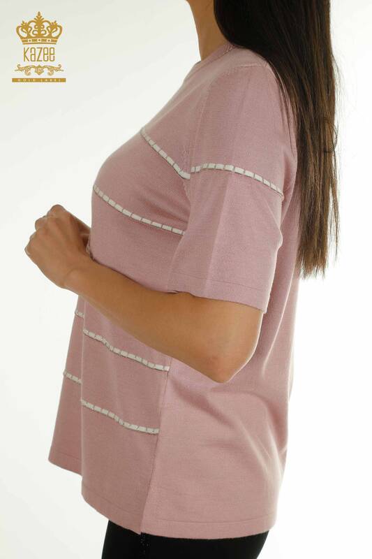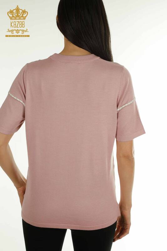 Toptan Kadın Triko Kazak Amerikan Model Kısa Kollu Pudra - 30355 | KAZEE