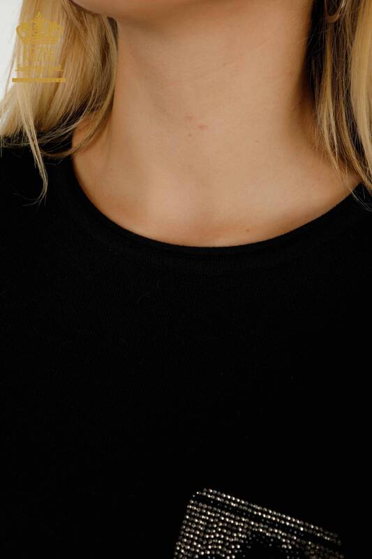 Toptan Kadın Triko Kazak Amerikan Model Taş İşlemeli Siyah - 30534 | KAZEE