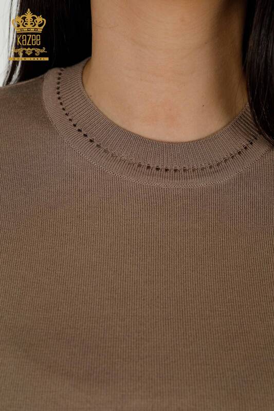 Toptan Kadın Triko Kazak Amerikan Model Vizon - 30255 | KAZEE