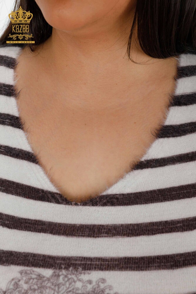 Женский свитер ангора оптом v-вырез с цифровым принтом цветы - 18513 | КAZEE
