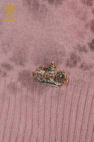 Оптовый Женский Трикотаж Свитер с Логотипом Ангора Узорчатая Пудра - 18980 | КАЗЕЕ