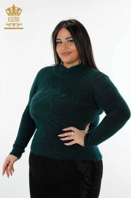 оптом Женский Трикотаж Свитер Кошка С Узором Воротник-стойка Блеск Скрещенные Ангора Нефти - 19071 | КАЗЕЕ