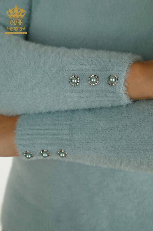 Toptan Kadın Triko Kazak Angora Düğme Detaylı Mint - 30667 | KAZEE