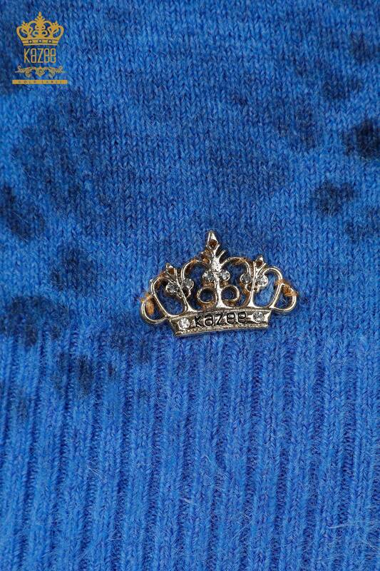Toptan Kadın Triko Kazak Angora Logolu Mavi - 18982 | KAZEE