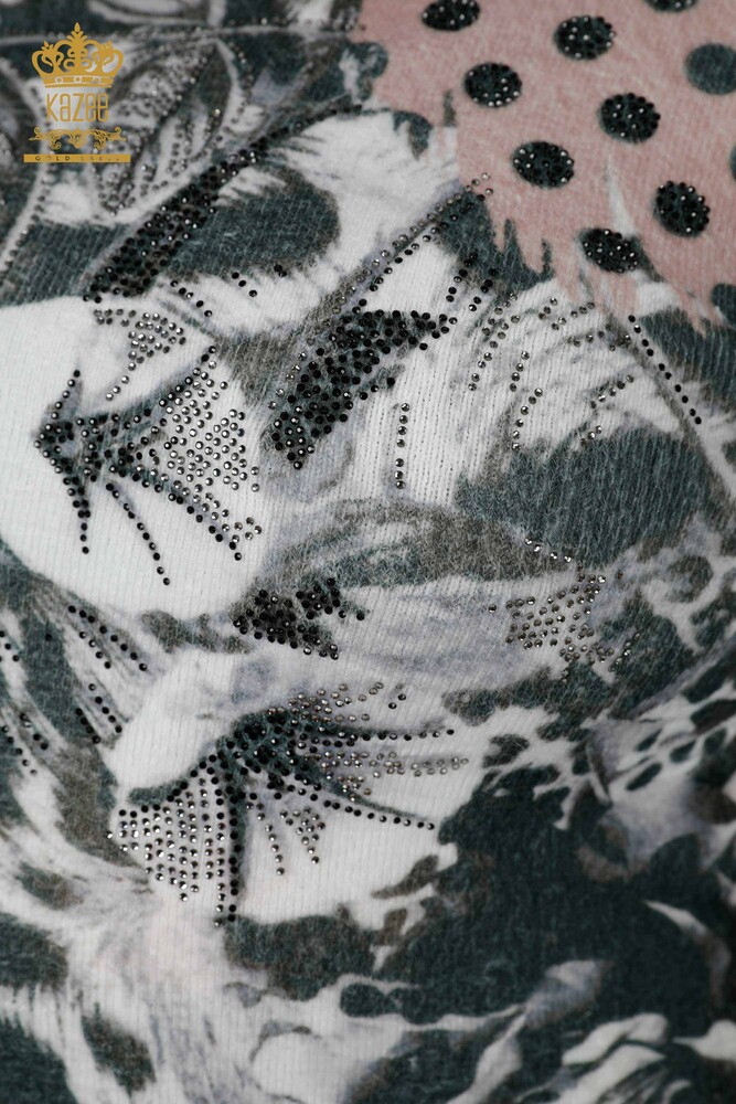 Toptan Kadın Triko Kazak Angora Taş İşlemeli Desenli Vizon - 16000 | KAZEE