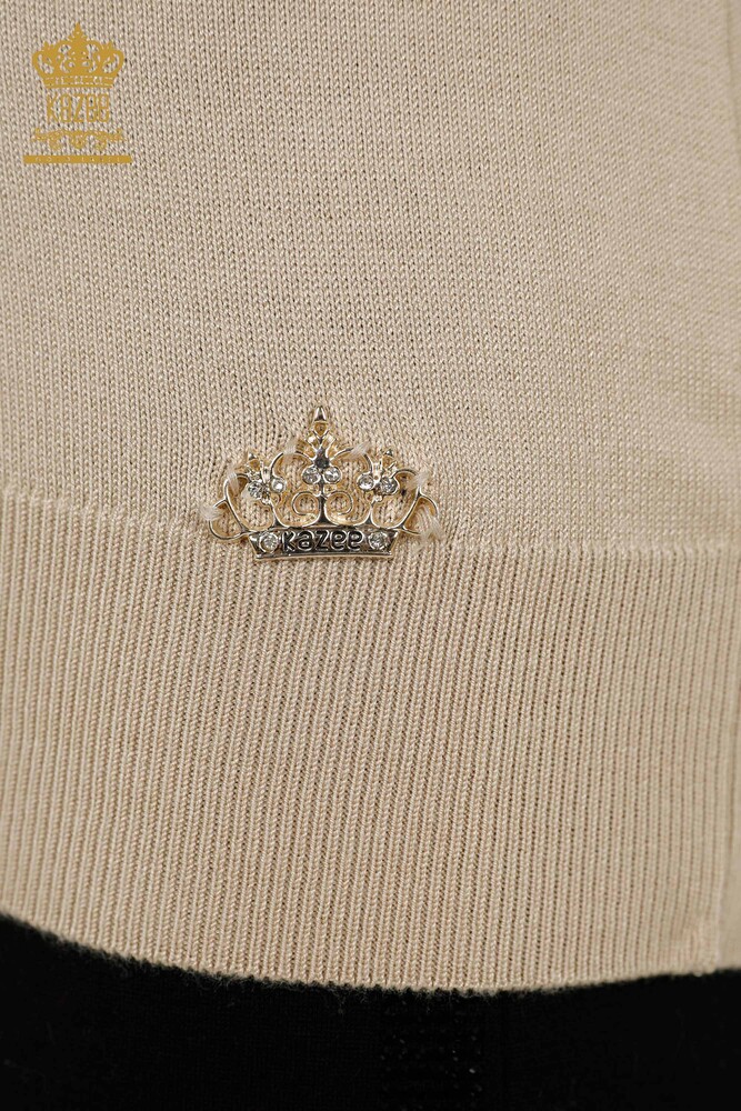 Оптовая Женский Трикотаж Свитер Водолазка Основной Логотип Светло-Бежевый - 11122 | КАЗЕЕ