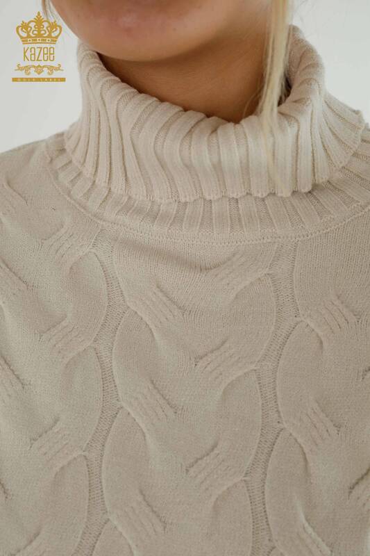 Toptan Kadın Triko Kazak Balıkçı Yaka Bej - 30231 | KAZEE