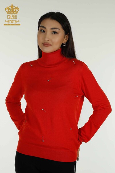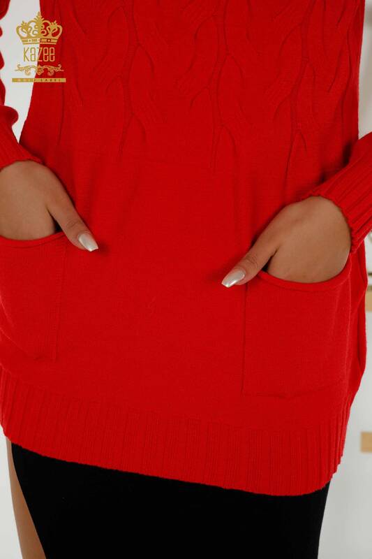 Оптовая продажа женского трикотажа Свитер Водолазка С Двумя Карманами Тканый Красный - 30231 | КАЗИ