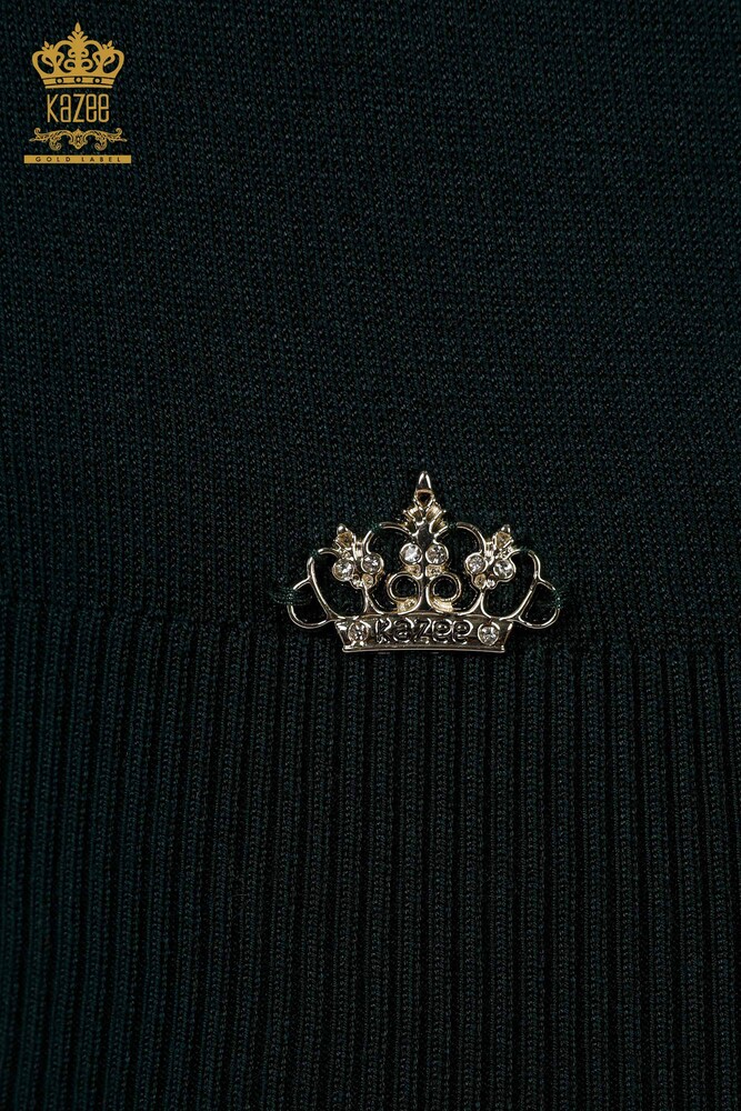 سترة تريكو نسائية بالجملة موديل أمريكي أساسي بشعار Nefti - 16271 | كازي