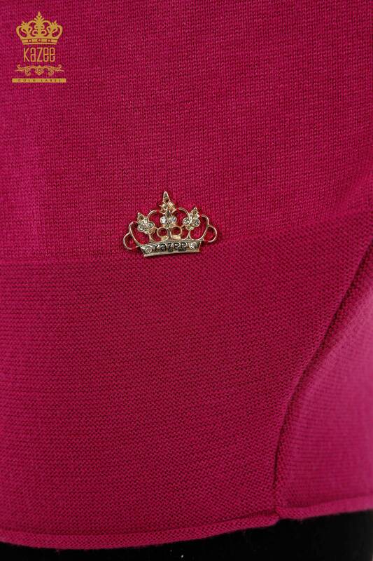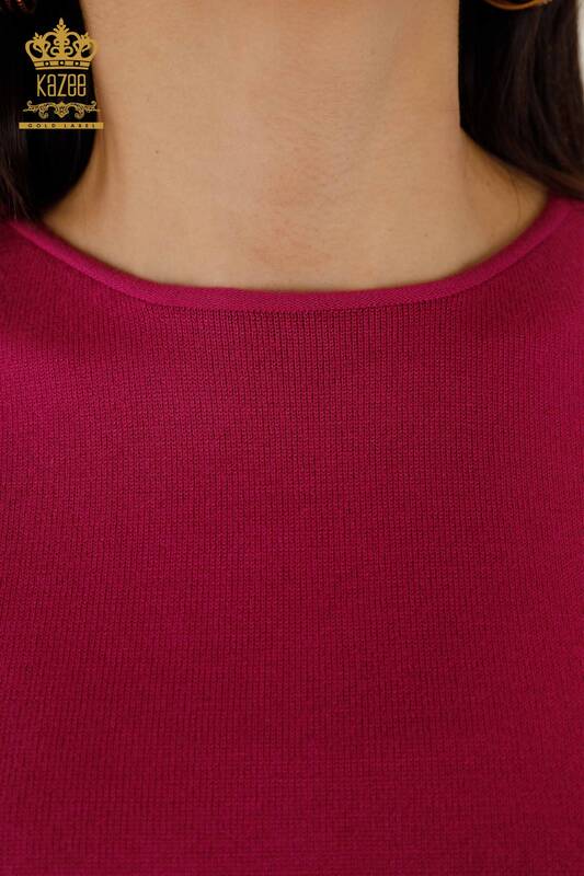 Großhandel Damen Strickpullover Basic Logo Fledermausärmel Lila - 30241 | KAZEE