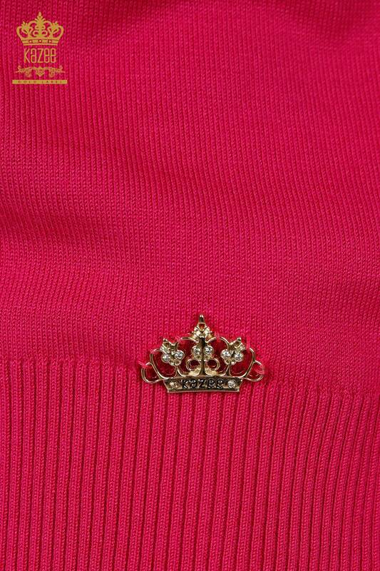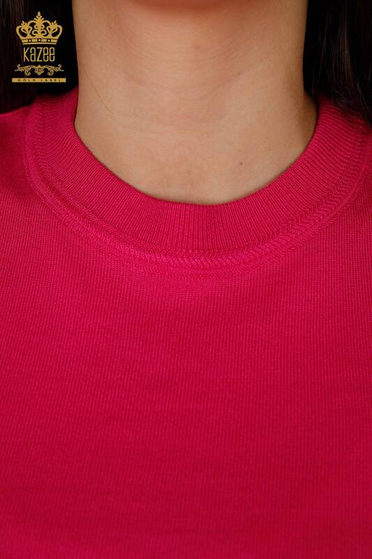 Toptan Kadın Triko Kazak Basic Logolu Fuşya - 30254 | KAZEE