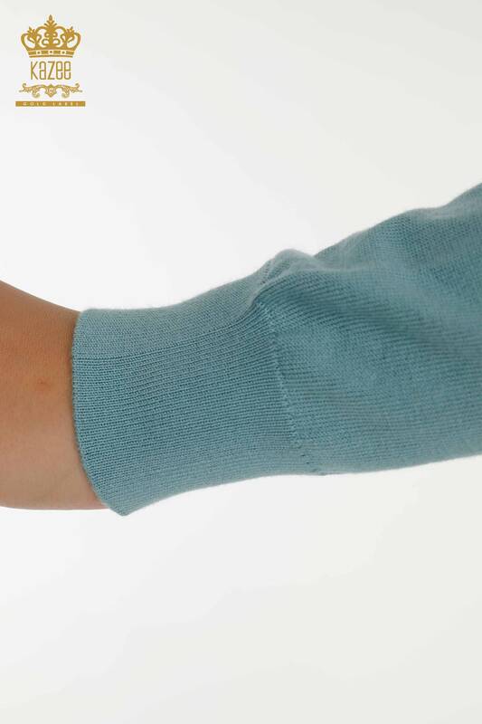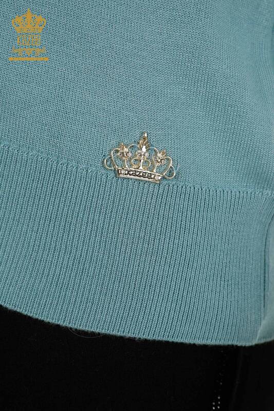 Großhandel Damen Strickpullover Basic Logo Rundhalsausschnitt Mint - 11052 | KAZEE